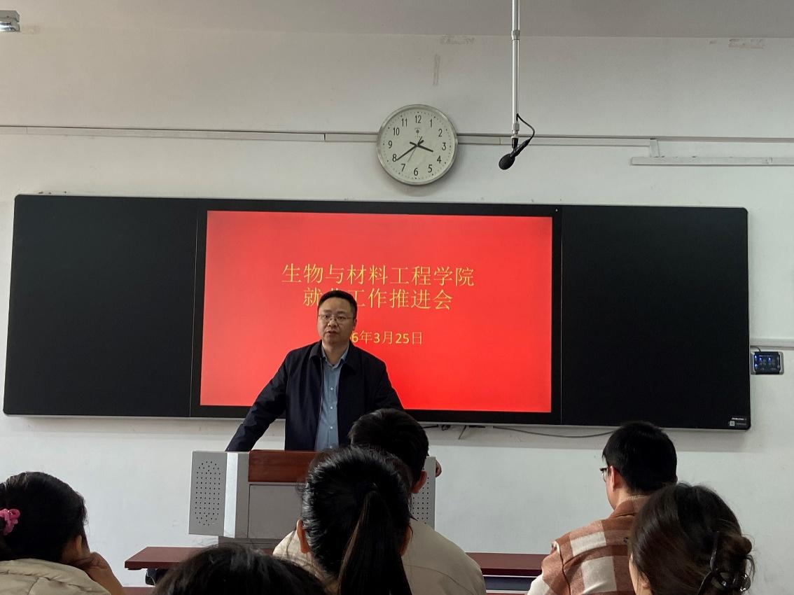 为深入贯彻落实学校2026届毕业生就业创业工作推进会精神,进一步压实就业工作责任,3月25日,我院召开2026届毕业生就业工作推进会,学院党委副书记贾岱、专业负责人及毕业生指导教师参加会议。